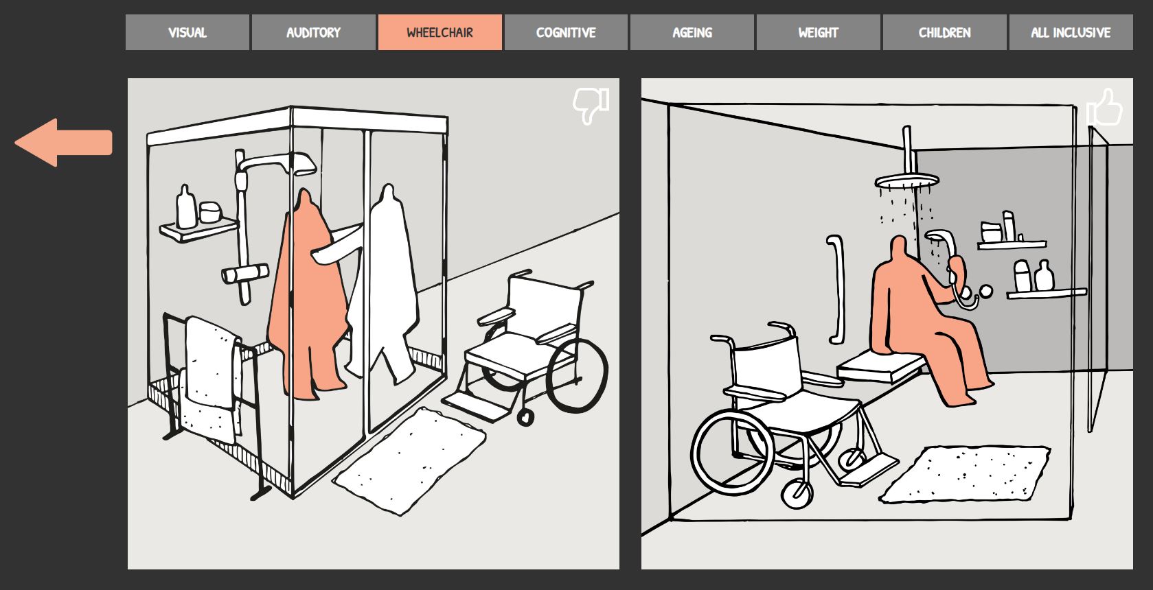 On the top you find our USERS, user profiles such as visual, auditory, wheelchair, … Some users also have subuser groups available. Click on them to get more information about these users.